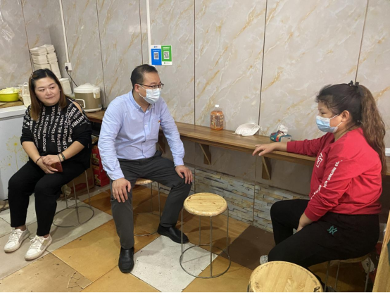 在社区工作人员的陪同下,张慧经理及公司职工带着慰问物品,来到“三认"对象聂静家经营的小餐馆中,一进门,张经理就熟络地询问起聂女士的身体状况及家庭情况。交谈中了解到聂静是从河南嫁过来的,其父母也已在十堰定居。张经理关切的表示如果在生活中有任何困难,都可及时同他联系。最后,聂静对张经理及社区人员的关心帮助表示感谢。