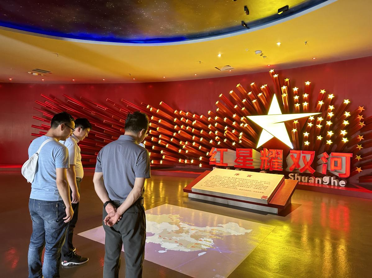 5月28日,调研团队在副局长程学奎带领下先后参观“红星耀双河”陈列馆,通过历史文献与实物展品,了解第五师屯垦戍边发展史及湖北援疆工作历程。随后前往湖北省援疆工作前方指挥部,与双河市第五师湖北援疆工作队干部亲切交流,深入学习援疆干部在教育、产业等领域的帮扶成效,共话援疆教育发展蓝图。