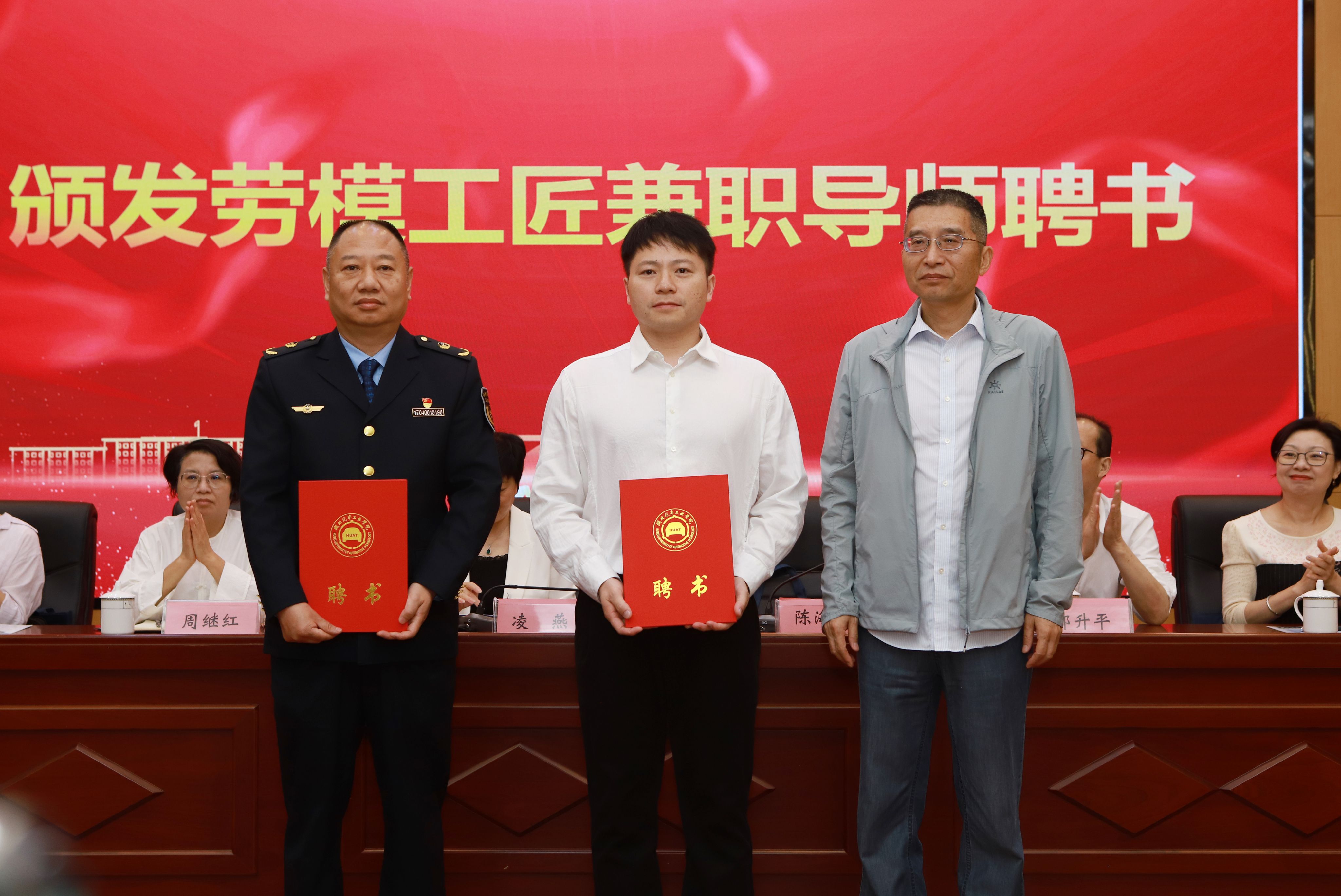 “劳模工匠进校园”活动中,特邀全国劳动模范王孜、余盛林登上“车城工人大思政课”讲台,分别以《从技术攻坚到匠心传承——我的成长之路》《守正创新——助推传统绿茶转型升级》为题,分享扎根一线、创新突破的奋斗故事。他们的讲述生动诠释了“执着专注、精益求精、一丝不苟、追求卓越”的工匠精神,为300余名新生及产业工人员工上了一堂深刻的思想教育课。活动现场,市总工会与校方为两位劳模颁发“兼职导师”聘书,推动工匠精神薪火相传。