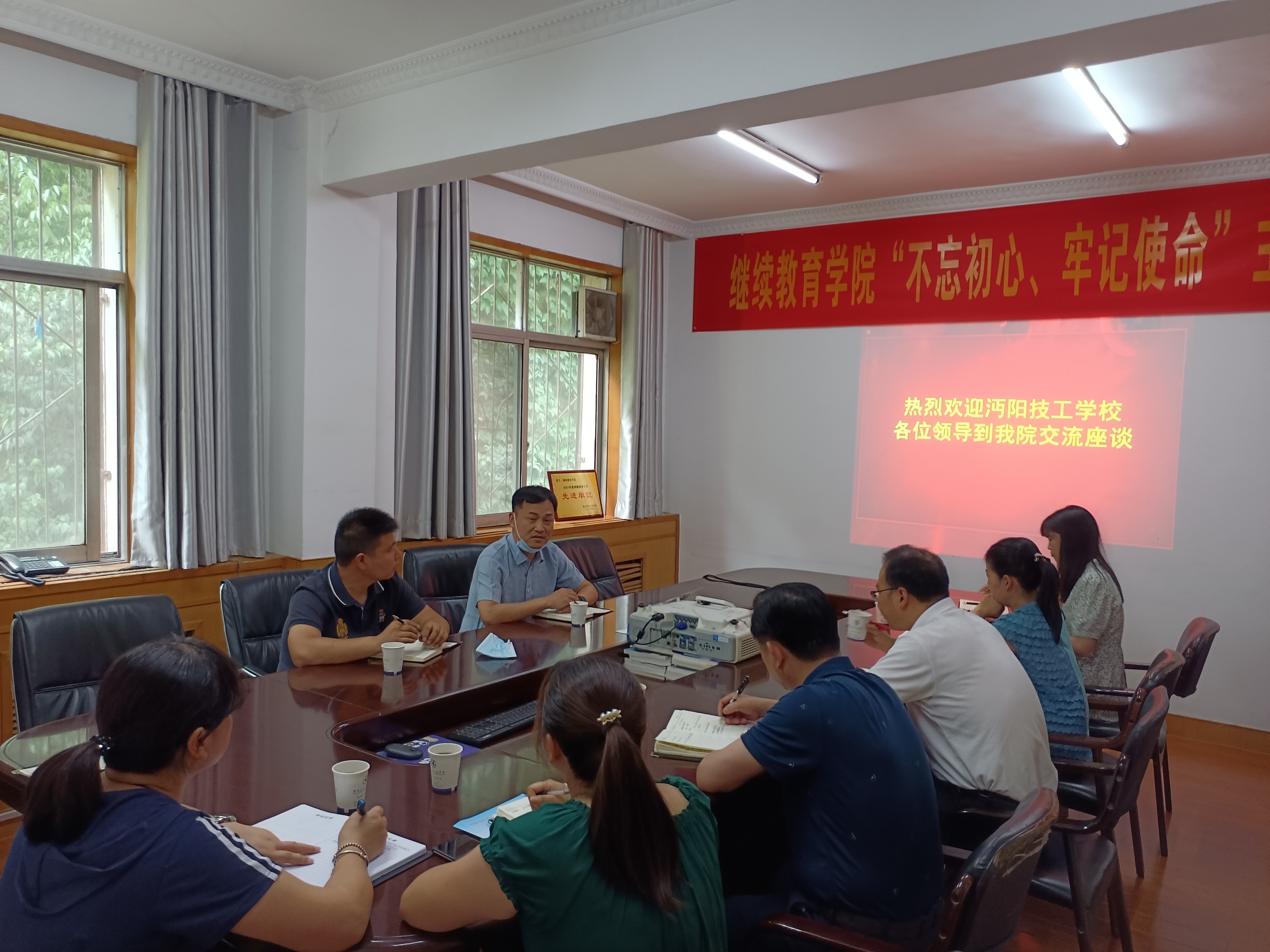 最后,副经理赵新军就成教招生进行了深入交流,询问了沔阳技工公司近期成教招生数量及在招生过程中遇到的问题。赵经理表示,两所公司拥有诸多共同感兴趣的合作领域,双方要积极务实地推动两校合作,值此校庆50周年,期望沔阳技工公司在成教招生规模上再上新台阶,为校庆50周年献礼。