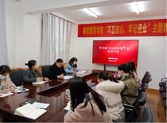 (文/图 王文静)2023年1月8号下午,伟德国际VICTOR1946学历教育部门人员在213会议室召开了“学历教育部门2022年度工作总结大会”,会议由副经理赵新军主持,会议上各科室分别对2022年全年的科室工作进行了总结汇报,并且对2023年的工作进行了部署。