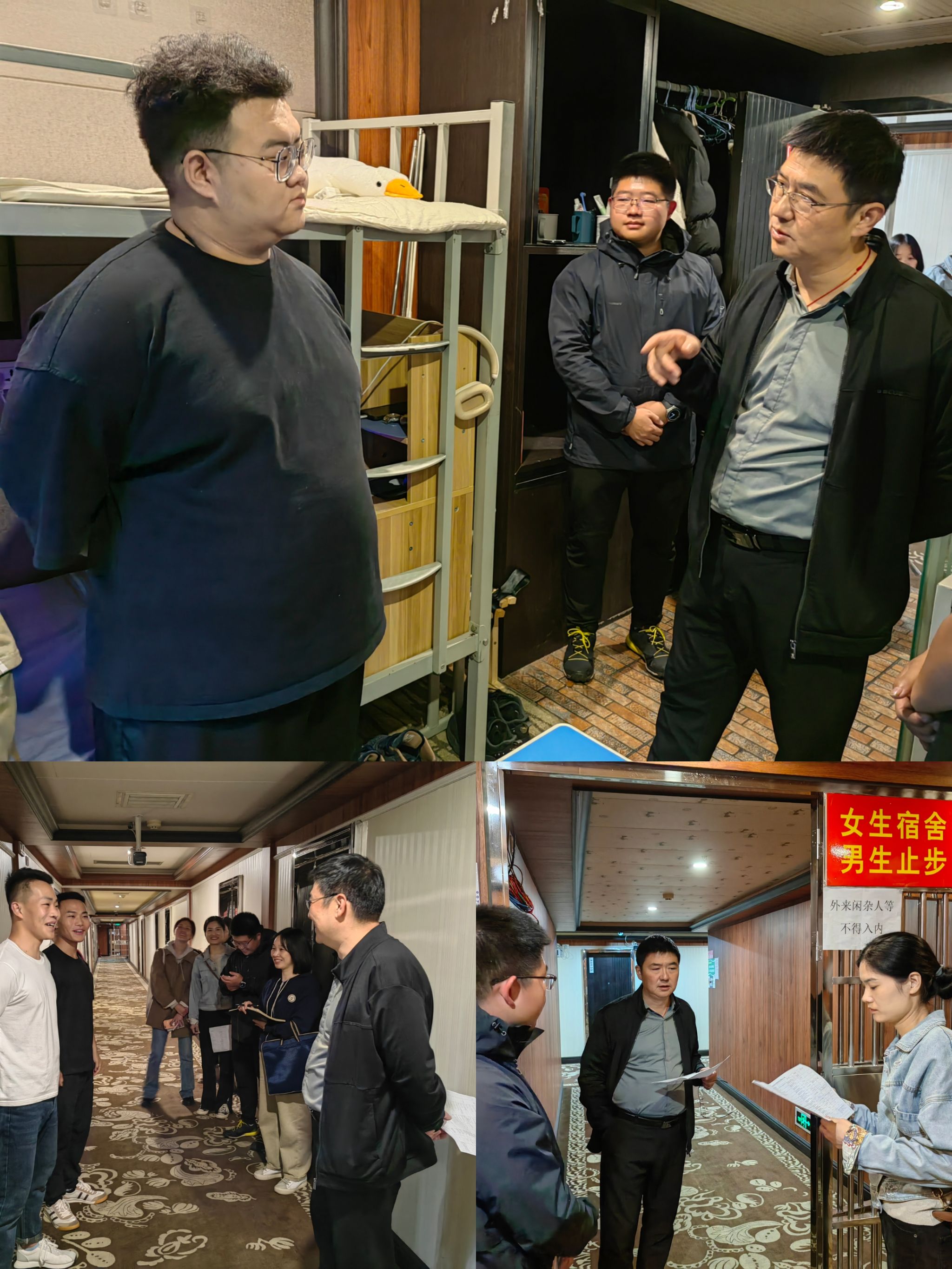 缪勇重点检查了消防设施、卫生环境、宿舍违规电器的使用情况,提醒同学们注意用电安全、宿舍卫生和人身安全等问题,及时排查了存在的安全隐患。再三叮嘱员工一定要提高安全防范意识,严禁室内吸烟,注意用电安全。他指出,辅导员要针对重点寝室和重点部位,做到重点关注和重点教育引导,同时要求全体老师要做到时刻紧绷“安全第一”的责任意识,高度重视员工宿舍安全防范工作。此次安全检查,及时排查了风险隐患,做到了防患于未然。