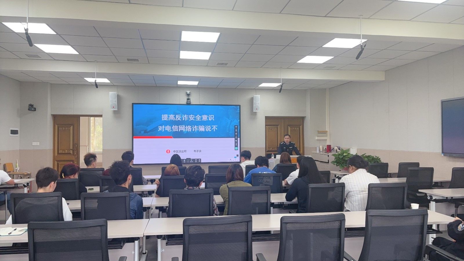 韦子永围绕中国民族政策的形成与发展进行讲解,让同学们深刻认识到铸牢中华民族共同体意识的重大意义,指出各民族要像石榴籽一样紧紧抱在一起,守望相助,共同缔造美好未来。随后,韦子永还以刷单返利、冒充身份、网络购物、虚假服务、买卖游戏装备等高频发生的典型电诈案件为例为少数民子员工进行了防范电信诈骗宣讲,并以盗窃、打架斗殴、管制刀具伤人、不遵守交通规则等常见的真实案例教育引导同学们要增强自我保护意识、掌握合理化解冲突的方法,依法依规维护自身合法权益。