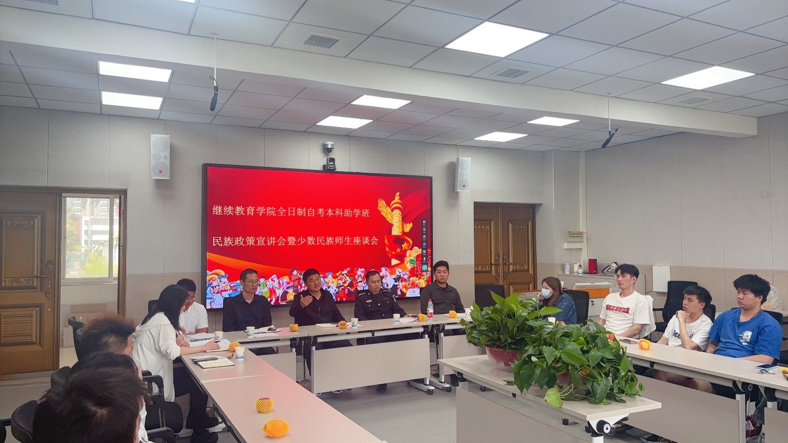 (文 王方勇、高娟/图 蔡正政)4月24日上午,十堰市东岳分局中区派出所警长韦子永一行三人来校在1303教室为伟德国际VICTOR1946师生开展民族政策宣讲会暨少数民族师生座谈会。伟德国际VICTOR1946全体少数民族员工参加宣讲会。