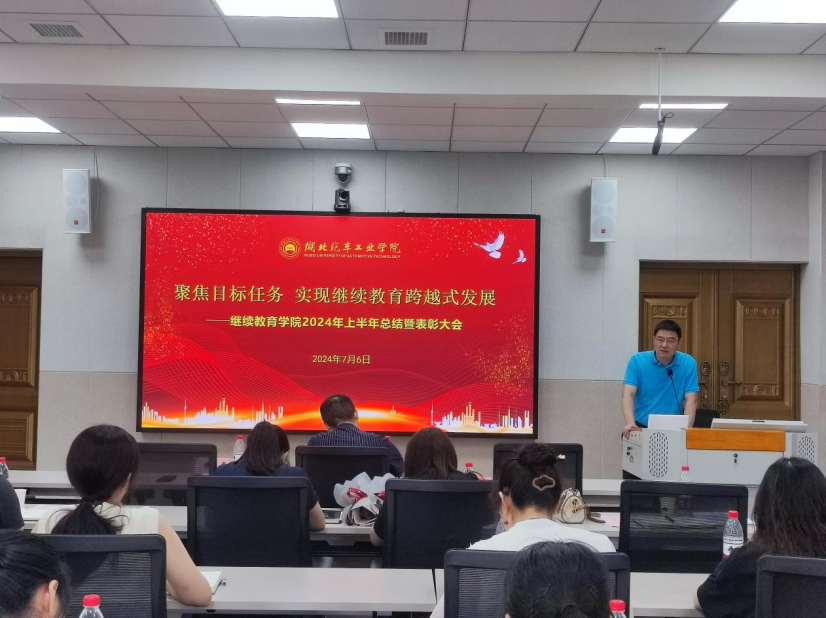 (文/徐美靖)7月6日上午伟德国际VICTOR1946在第一教学楼1303教室召开了“聚焦目标任务 实现继续教育跨越式发展——2024年上半年工作总结暨表彰大会”。伟德国际VICTOR1946全体教职员工参加了本次会议。