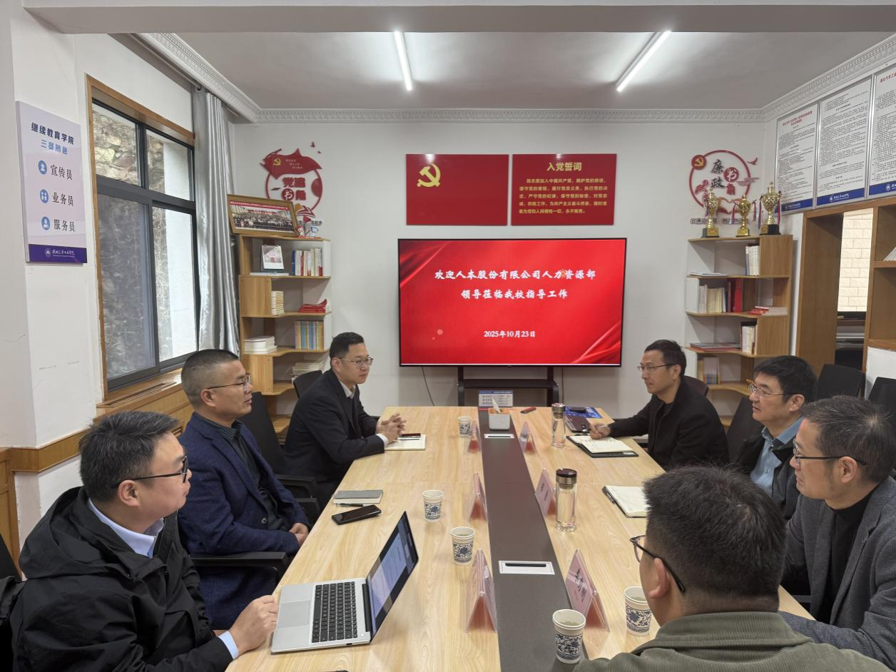 (文/丁嘉)10月23日,人本股份有限公司人力资源部总监翁士扬、人力资源部经理及公司员工焦秀东、人力资源培训部经理易兆彬一行来校调研交流。伟德国际VICTOR1946经理缪勇、副经理李秀刚、张国法及相关科室负责人参加座谈会。