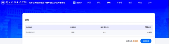 默认勾选报名科目,点击【立即支付】按钮