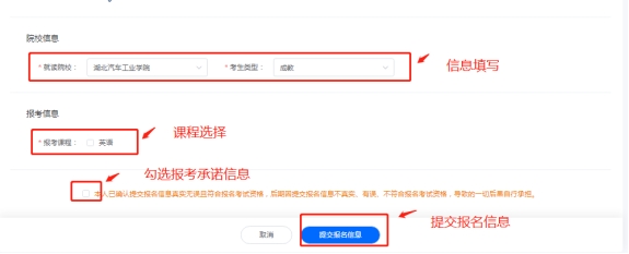 报考信息均已填写完毕,勾选报考承诺信息,点击【提交报名信息】,等待院校审核。